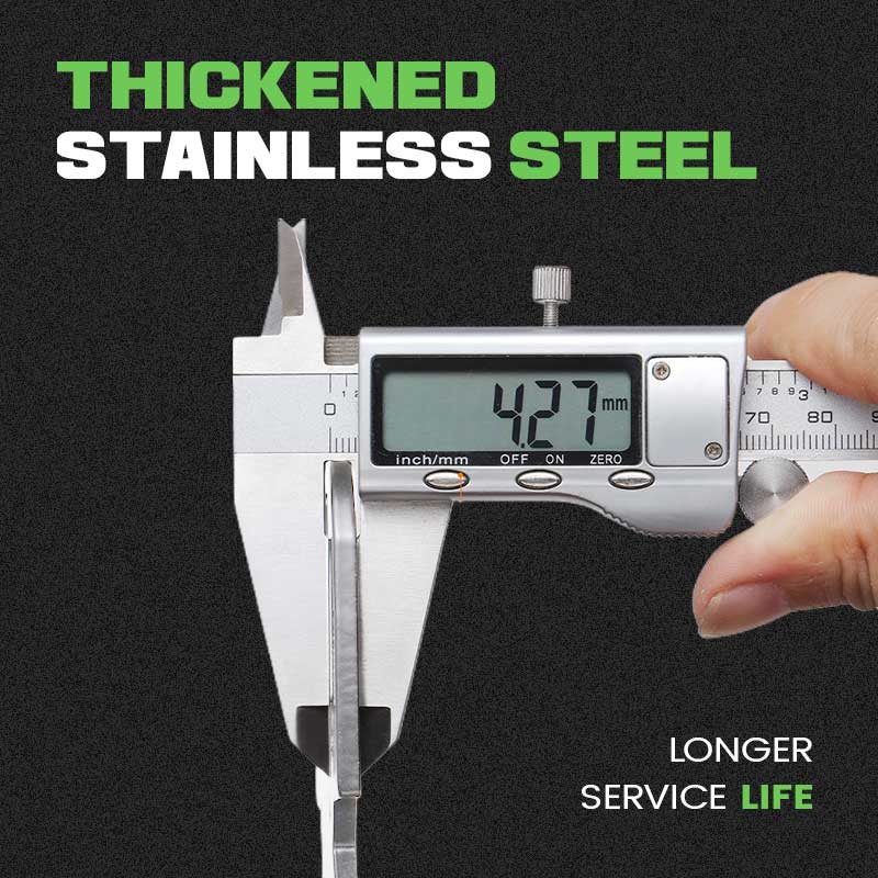 FĂRTJOCKAT RUSTFRITT STĂ L - AnvĂ€ndningen av förtjockat rostfritt stĂ„lmaterial ökar vikten och styrkan hos det rostfria stĂ„let, vilket gör skiftnyckeln motstĂ„ndskraftig mot deformation och lĂ€tt att hantera. Samtidigt rostar det inte lĂ€tt och Ă€r miljövĂ€nligt.